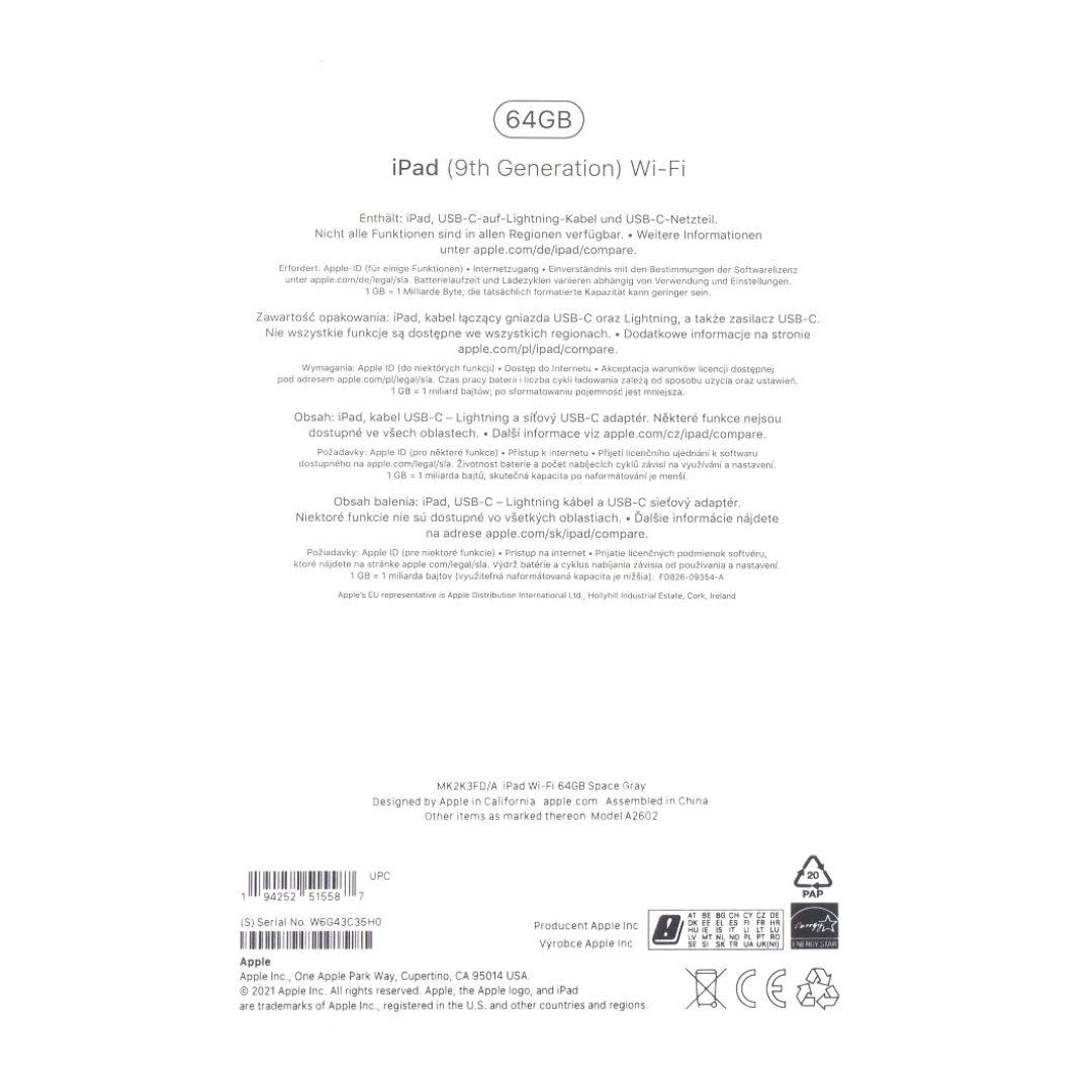 Apple iPad (9th Generation) 64GB, ArtNr.A2602, OVP, (Neu!), inkl. 20% MwSt.