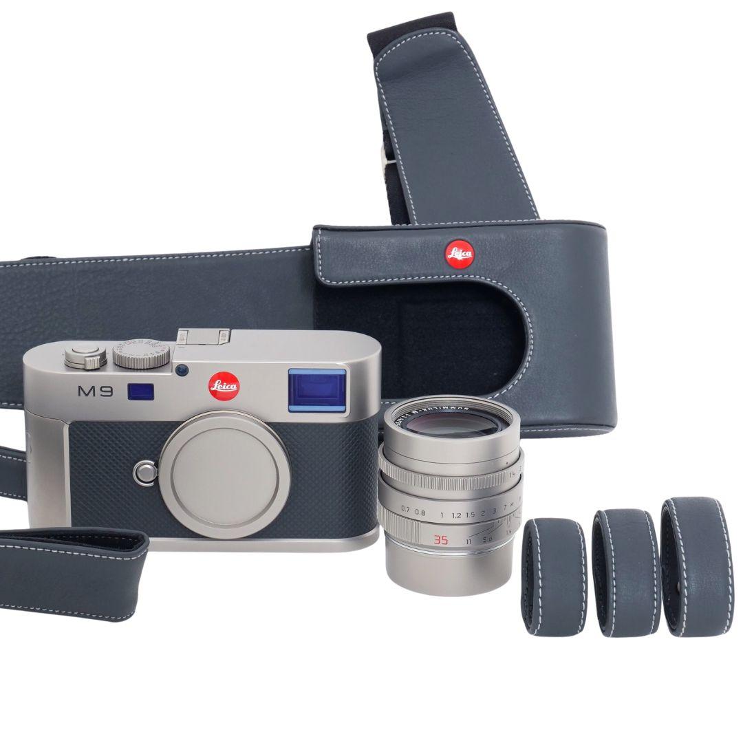 Leica M9 Titan Sn. 4000127 Set, inkl. M Summilux 35mm/1,4 ASPH, Titan, Sn.4108087, SetNr.127/500, ArtNr.10715, 2. Akku, Leder Fingerschlaufen S, M, L, Lederriemen, Holster